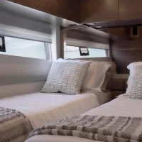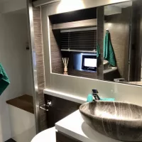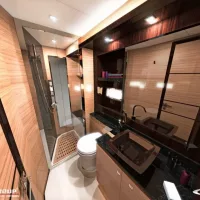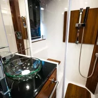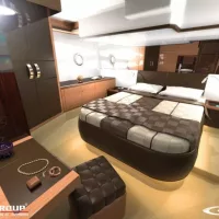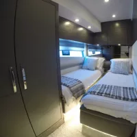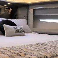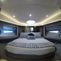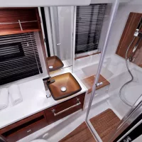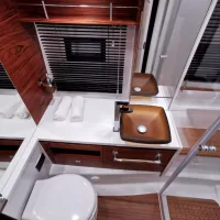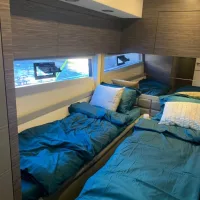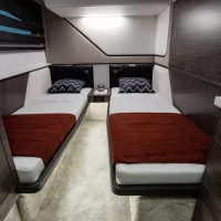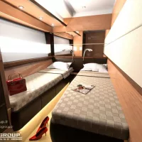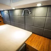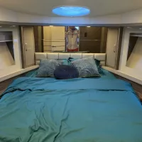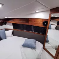 Un orientées longitudinalement lit double, avec une lumière naturelle provenant des deux côtés, en raison de la grande surface dans le fuselage de l’intégré dans Windows, ainsi que la cabine de douche séparée dans la salle de bain, et de nombreux autres Détails qui offrent un maximum de confort sur le bateau.