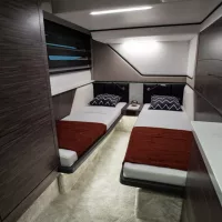 L’intérieur est très innovante, et la sensation d’espace, car il n’est pas prévu dans un bateau de cette taille. Un orientées longitudinalement lit double, avec une lumière naturelle provenant des deux côtés, en raison de la grande surface dans le fuselage de l’intégré dans Windows, ainsi que la cabine de douche séparée dans la salle de bain, et de nombreux autres Détails qui offrent un maximum de confort sur le bateau.