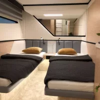 Une chambre spacieuse par le propriétaire du navire, ou en option, deux chambres, une salle de bains supplémentaire avec douche, une cuisine entièrement équipée et un salon confortable avec une TÉLÉVISION et de la place supplémentaire pour le sommeil – ce sont les locaux, la garantie est idéal pour un confortable séjour actif.